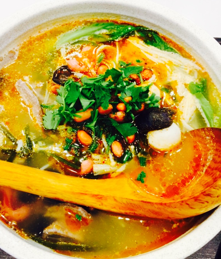 ??First 。time 。to 。eat 。火锅米线??。今天是我和男票兼职发工资的一天✨。我们选择了彭德莱米线 。 。是的 。很特别的火锅米线????。第一次吃火锅米线呢 。锅端过来的时候 。 。我们确实被惊到了???? 。因为它真的是像一个火锅??。锅大 。 。??勺子大??吃起来超级有范儿??????。我们点的是三鲜米线 。里面有许多东西 。猪肝 。各种蔬菜 。还有丸子 。还有米线。反正好多好多的东西??。吃的好爽好饱。真的把米线吃出了火锅的样子??????????。没吃过的伙伴们快来尝试吧??。