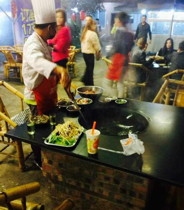 很适合团队聚餐。最重点的是,尽管在坝坝头,但有炭火和取暖器,相当的暖和老板娘很热心,味道很合胃口,分量很足。还送芹菜炒的鸡杂,一大盆白菜鸡血汤,太霸道了。很适合团队聚餐。最重点的是,尽管在坝坝头,但有炭火和取暖器,相当的暖和。