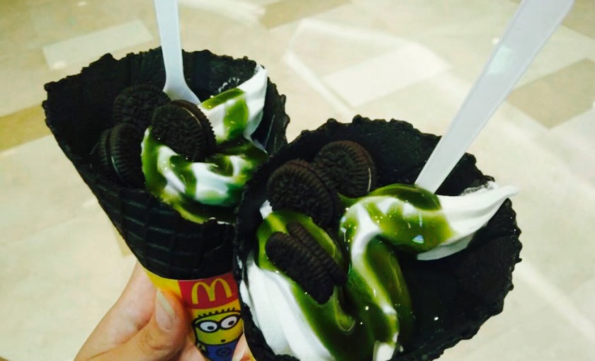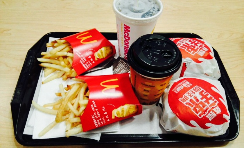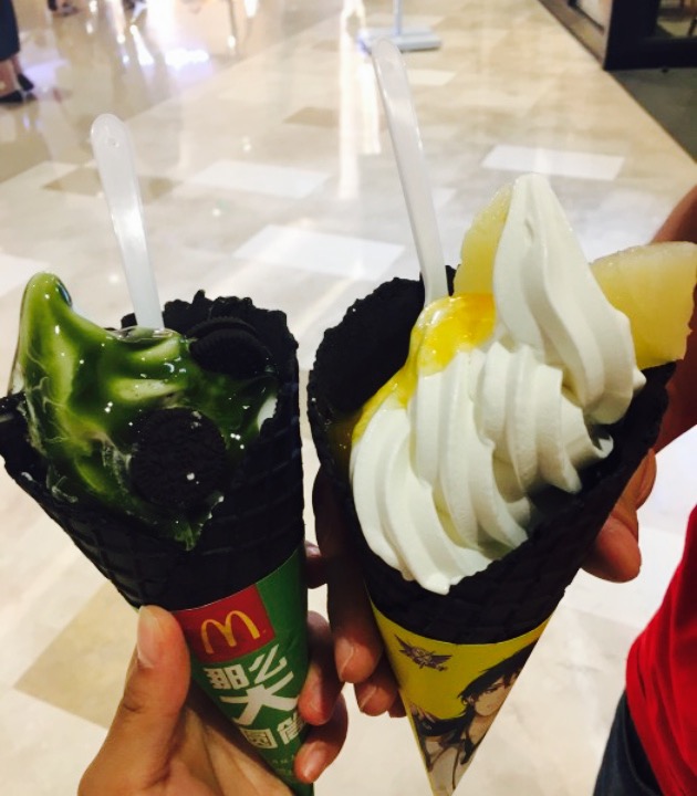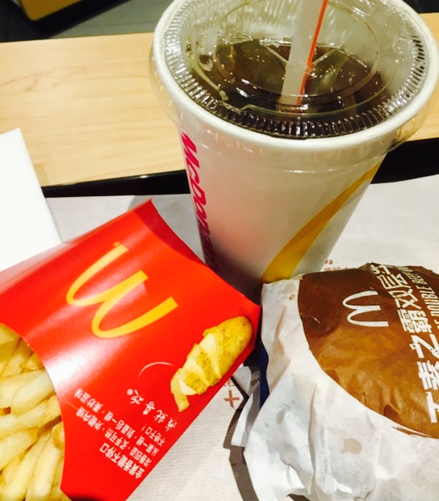圣代就不多说了,都那味儿,买了巧克力味的。草莓派满满的少女心,表皮酥脆掉渣,咬一口内陷满满,还爆浆,还有草莓籽呢。一半酸奶,一半巧克力,冰火两重天。巨无霸汉堡不太入味,尽管有两层肉还有芝士,只是味道实在不敢恭维,还是喜欢吃辣鸡腿堡。