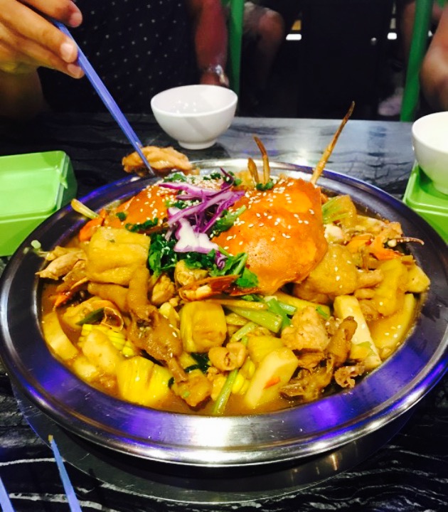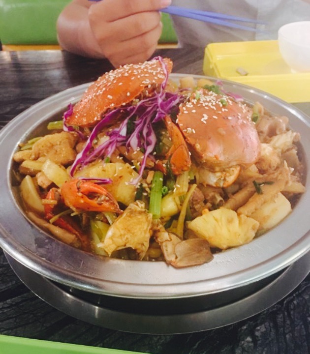 辣,不至于很辣的那种,整体来说满意的第一次尝试,个人还是感觉有些辣的美味,他不会很辣的那种,小锅其实也不少的,尽管说是2人分量,但3-4个人吃都可以,好可口,蟹还有点膏的,那个小吃萝卜皮也好好吃,好脆,有d 。辣,不至于很辣的那种,整体来说满意的。