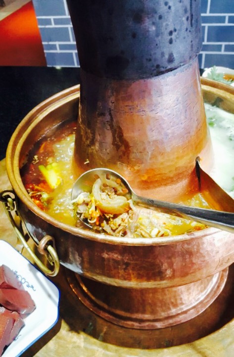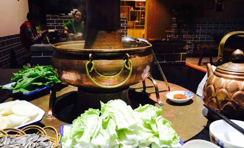 。 。 。 。 。春节的时候去鹤庆旅行,回旅店的途中见到同兴德牛肉火锅店,门面虽然不大,但招牌很特点,从外面望进去,见到紫气东来四个字,再进入店里,停车的地方很宽大,是间园林式的歺馆。店里摆满各种铜器,造型各异,看得出老板是个好有品味的人。 。 。 。 。 。 。 。 。我们二人点了一个细锅,要了牛肉和牛筋,清汤锅底。上菜的时候肉是已经卤熟的了,看份量足有1斤。汤底很清甜,因我们是广州人,口味清淡,就没有让店家将牛肉放入锅里煮,而是喜欢吃多少就放多少。牛肉和牛筋煮一下就好了,软硬适中,有很浓的牛肉味,牛肉还是带皮的,很美味。蘸料可以自己选,小米椒够辣。另点了白萝卜,和小青菜,比在大城市的青菜好吃多了。价钱经济实惠。歺馆免费赠送葵瓜子和纸巾。值得一提的是,服务生态度热心,不断地问还有什么需要,让人倍感亲切。歺馆的招牌菜还有酱牛肉和马帮肉,可惜我们胃口少,吃不下了。下次有机会一定要尝尝一下。 。 。 。 。 。 。 。 。饭后跟老板聊聊,得知他是当地人,以前在央企从事工程工作的,现在藉着鹤庆搞大学生创业活动,就回家乡发展了。闲谈中看得出老板是在尽全力将家乡的文明,美味,美景推广出去。老板娘还向我们推荐草海湿地景区,第二天我们去游玩了,真是人间仙景,不枉此行。 。 。 。 。 。 。 。 。祝同兴德火锅店生意兴隆,越做越旺。