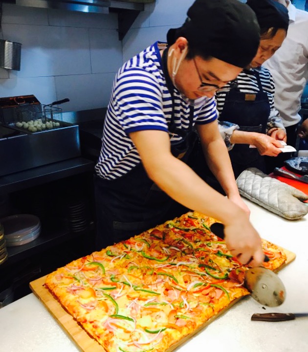 在万达四楼,位置还是比较好的,每次去都不少人,生意很红火啊,点了一份榴莲披萨试了试,披萨饼特别的柔软,榴莲味儿十足 。里边确实是有榴莲呢,超美味,十二寸也挺大个了,两三个好朋友一同吃足够了,就是服务员比较急躁,有一点点小小的不安逸。