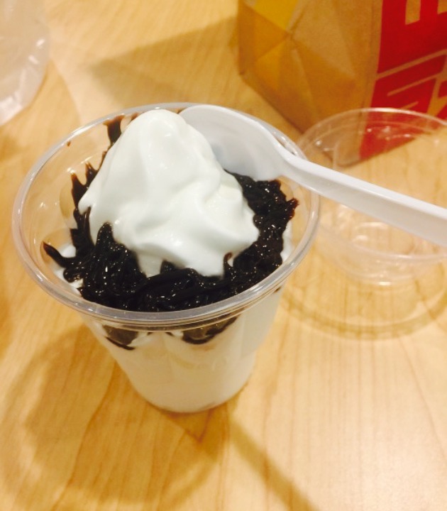 座位很好找,到地下一楼就可以看出。原来吃的抹茶味的奥利奥甜筒,虽然奥利奥很爽口,不过真的太甜了。特别是抹茶味的酱,太腻了。原味甜筒就还好,挺好吃的。还吃了限定的黑森林派,里边是蓝莓酱。我比较能吃甜,所以觉得酸酸甜甜挺好吃的。可是朋友感觉太甜了。