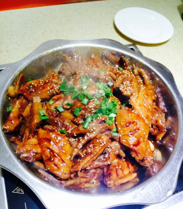 ...,这次点了明虾煲,里边的虾还很多,配菜有鸡爪,豆腐,洋芋,个人感觉鸡爪很鲜美,煮的很烂也很鲜美
