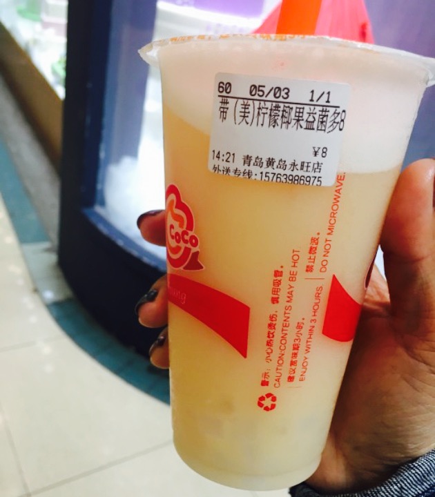 店员态度很好,制作速度也很快,不用长时间等,本来想点益菌多,不过不能去冰,只好改成热的金桔柠檬...
