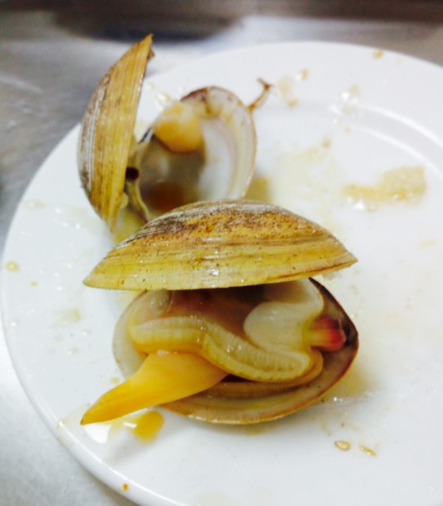 第一顿晚餐,从断桥那边走过来滴,也算是千里迢迢啦哈哈哈,正好多吃点哈哈,正直饭点,他家店人最多,虽然店面不是很大,门口串儿很香就进去了,就在兴一路路口。老板很热心,点了菜没一会就上炉子了。厨房就在我们身后都能看见。黄蚬子,个头不小很肥硕很清新。辣炒花蚬子,个头小小,很入味麻辣甜的,很美味。螃蟹??,这个时节的飞蟹来说全是很满的了。很鲜。生蚝,中规中矩,个头不大。黄瓜拌菜,中规中矩很大一盘子。串儿,羊肉串真的超级大个,一串儿能吃饱哈哈。牛肉串,没有啥味,一般般。棒鱼,贵有贵的道理,的确很厚实的一片。吃的真心撑到了,愉快的一顿。