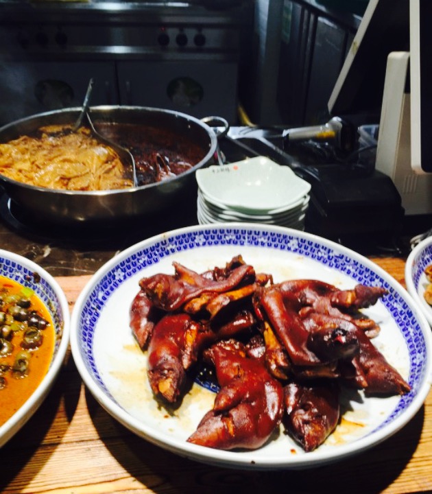 陈掌柜,这家在西城广场二楼。门口进去就可以看见。边上是烧饼店,点了面条,到陈掌柜看一下有没有其它好吃的,猪脚,各种小锅仔一字摆开。好像传说中很鲜美的麻滋没有见到,见到了千层糕。对于千层糕完全是儿时的印象,特别喜欢吃,迷之喜欢。嘿嘿。看着白白的千层糕,切成三角形放在大碗里,不管面条有多大碗,还是买了一块,五元一块。还能比较顺序的分层,不过口感太软粘了,不是太好吃。佩服他家的刀,把这么软软的千层糕可以切的这么光滑。千层糕不推荐。