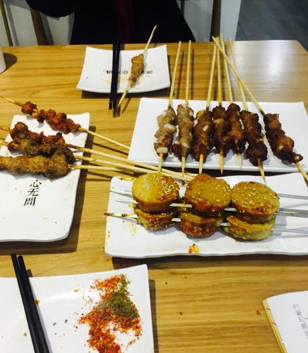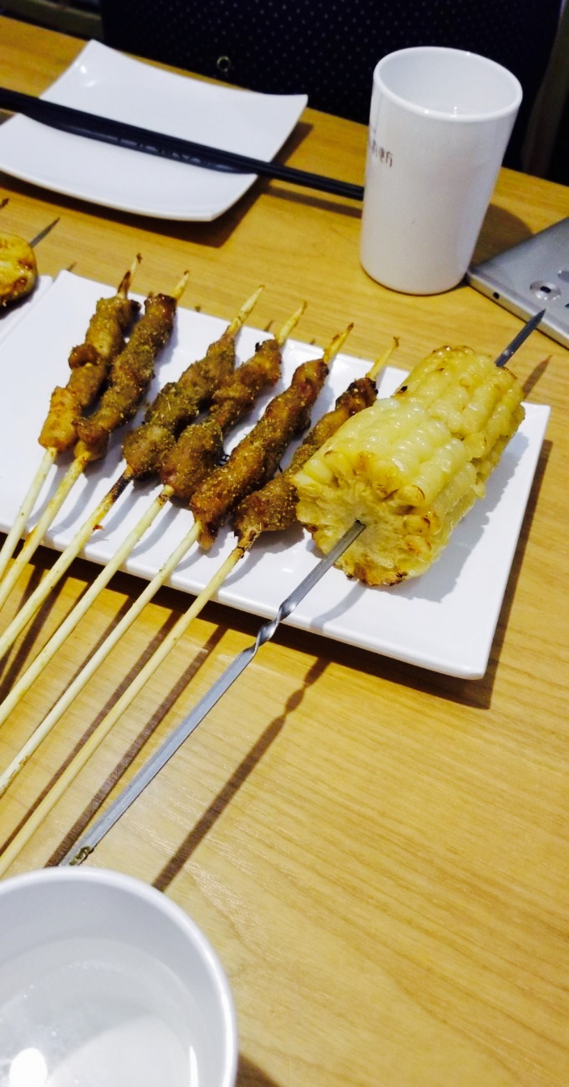 地址在万象汇北门停车场出口东边,一看这名字就挺小清新的,一进店里,日式小清新风格,十分有情调,满桌,生意兴隆,菜品也挺多的,都是烤好了直接吃,所以店里没有烟味。喜欢吃的每样来一份尝尝。麻辣排骨串很有嚼劲,脆骨酥脆。这个烤面包太太太美味了,蜂蜜加炼乳,烤得酥脆,太香了。烤生蚝也特别棒,烤出的汁多肉嫩,十分好吃。拉皮酸甜滑嫩。蜜汁梅肉不太合我口味。麻辣涮肚20串,特别嫩,可以再加其他串。圣女果培根吃起来酸甜加碳烤味,很有特点。人均50左右,整体味道不错,适合带伴侣或朋友聚。