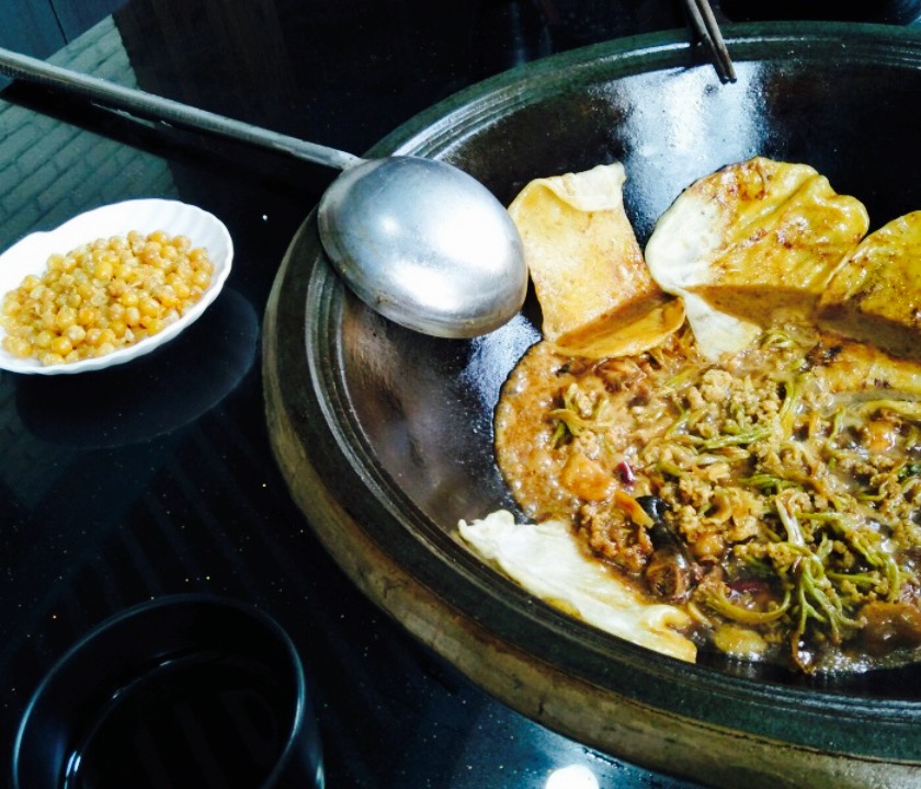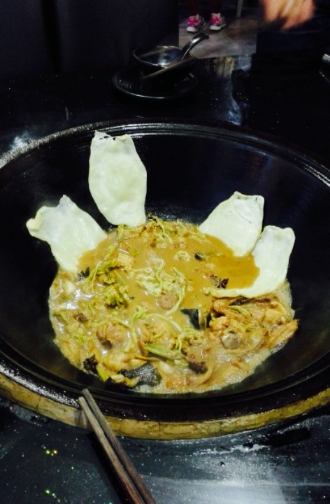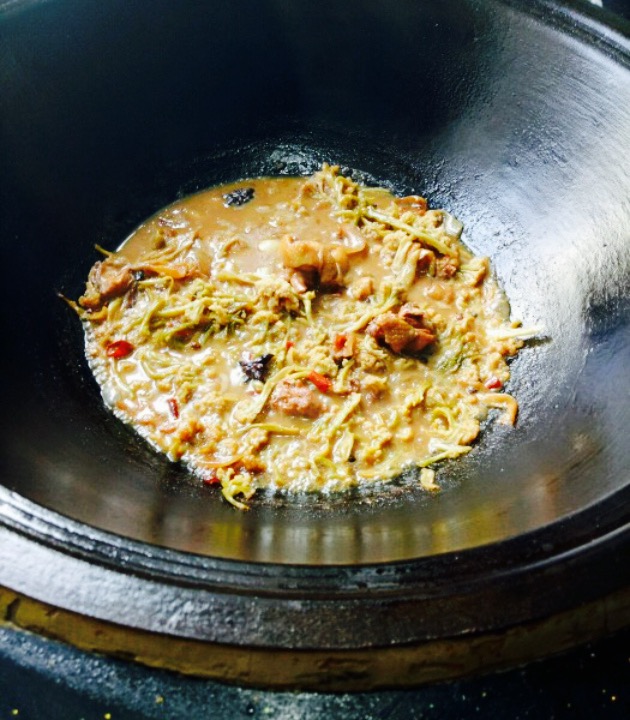 吃了好几天了,一直没空写网友攻略。我们吃的柴鸡套餐。都是人到了之后现烧的,原料一目了然,很整洁。鸡的分量好多,干花菜吸足了鸡汤的香醇,吃起来别有风味,并且又不会像新鲜花菜那样烂掉。大块大块的鸡味道也不错,最美味的还是五花肉,一点也不肥。锅上再贴上几个饼,在汤汁里泡一下,别提多满足了。