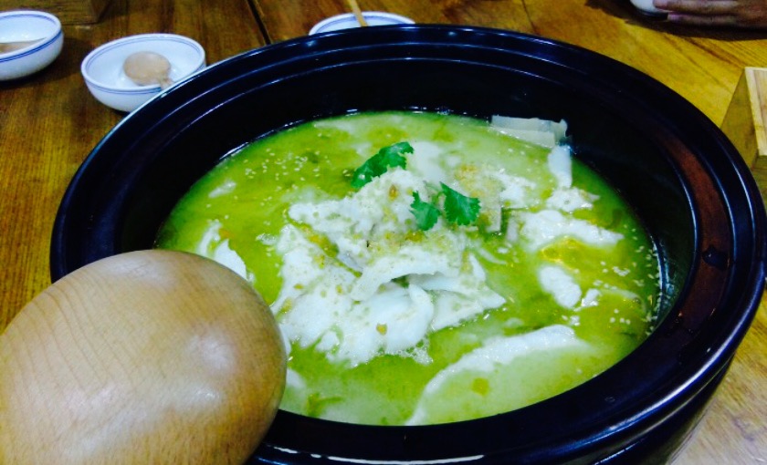 菜品,酸菜鱼是他们家的招牌菜,味道还不错,鱼肉完全没刺,小朋友也能吃。汤挺好喝。可是这家的菜量都很少