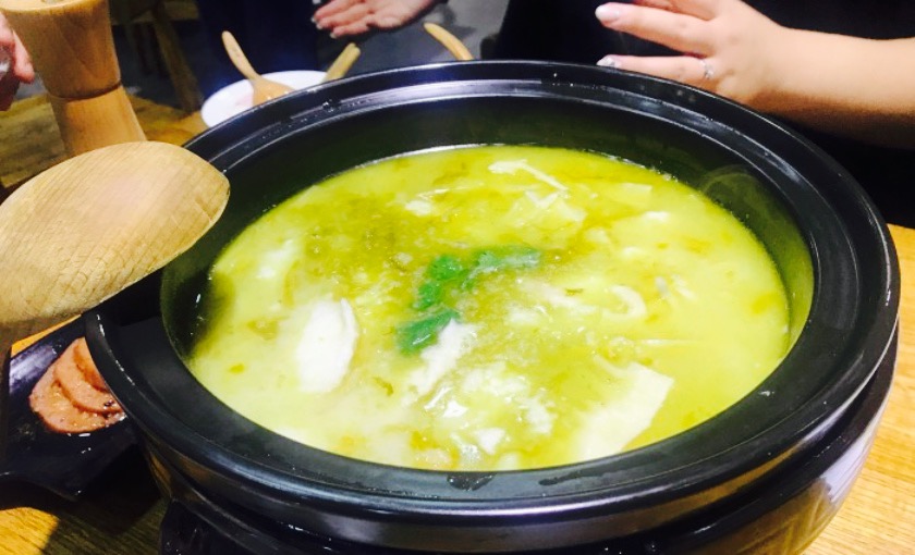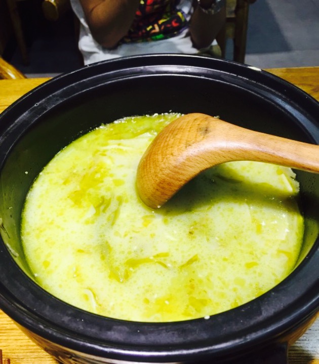 万达广场真的开了好多家餐饮店啊,主要集中在四楼,有著名的海底捞,花田煮,楼兰古丽等等,这家店在网上查到评论很好,就抱着试试想法过来了,从万达一楼大厅的那个直梯可以直接到四楼,很好找,出电梯左拐是海底捞,沿着路一直走就看到九锅一堂了。店里桌椅都是木质的,大厅进餐没有包间,人多可以拼桌子的,还不错。点菜都是网查的精品,1,有必点的酸菜鱼,里边的鱼是没有刺的龙利鱼,真心嫩,这款酸菜鱼可以说是微微辣,汤特别好喝。2,干锅土豆片,这菜量蛮大的,味道真的不错。3,干锅鲜香菇,挺大一个盘,看着就有食欲,爽口。4,还点了一个干锅红烧肉,菜量小不过味道真是绝美的。5,也不能光吃肉,要了一个圆生菜(忘记菜名了),清清淡淡的,深受好评。6,桂花糖藕很公道,但很入味。红糖锅盔也是不错的。