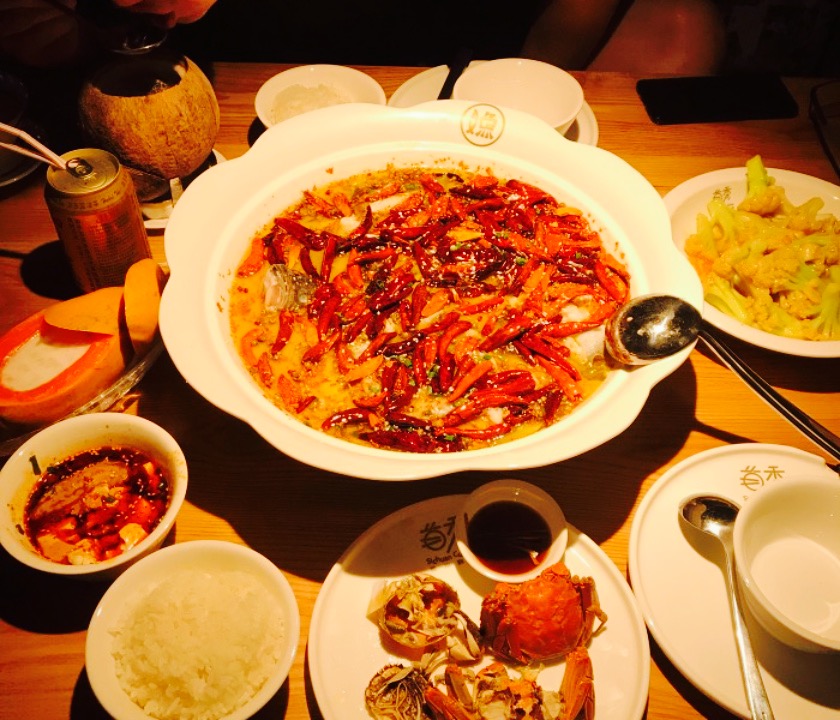 常常经过,最近才开业。就约了三五知己,来尝鲜。当然有些小意外,原本以为会有好多人来,最终就我们三个。哈哈哈哈哈 。好看自己了。话不多说开吃。最经典的 。当然还是#老坛酸菜鲈鱼#。酸菜酸里面透着一点甜很不一样。鱼当然比附近某某家的鲜美多了??。#香辣虾#是国庆时候送的,感谢杰哥????。#客家酿豆腐#很开心,是用铝锅原盅酱蒸出来的,有胡椒的鲜味??。两个凉拌小菜 。都和口味。满足了那两位的肉食饕餮欲。还会再来666666。