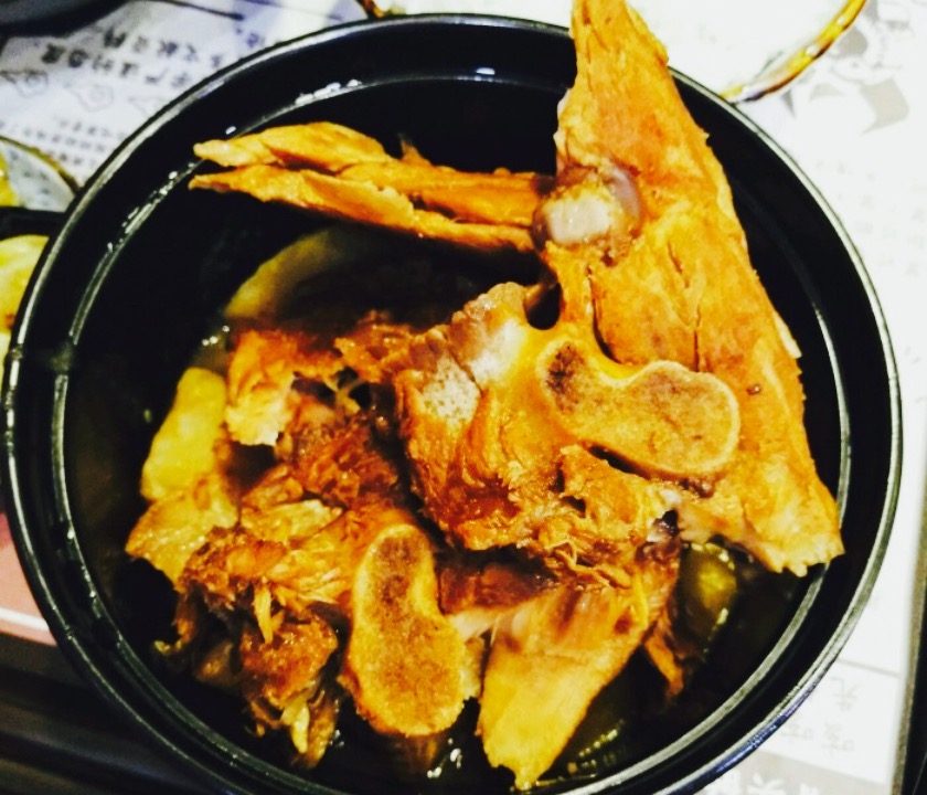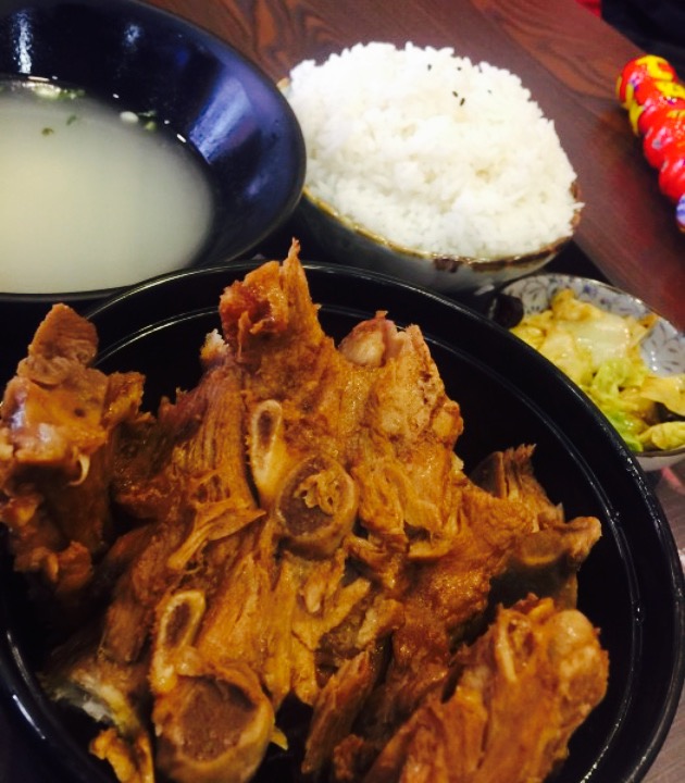 鲜美,伙计也很帅??,环境不错,一份里面好大一碗酱骨头,底下还有土豆豆角垫底,我们一家三口去吃的,去的时候一点,找了半个小时才找到,方向感不行啊。一点半去的还是有三桌,这家店生意不错。我吃着味道稍稍有些甜了,店里装潢风格我喜欢。