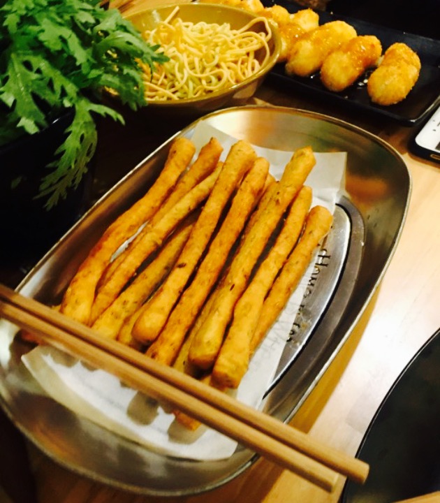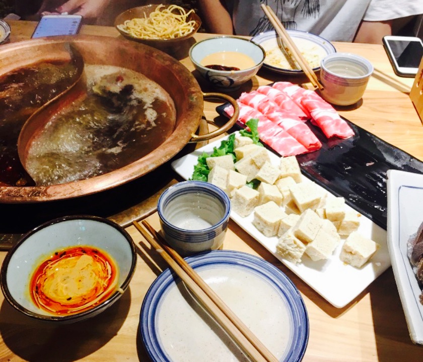 ...只是有酥肉,刚刚炸出来的,虾滑一小碗,但是要自己打,豆腐很有特点,糖水面超赞,只是每桌限购一份