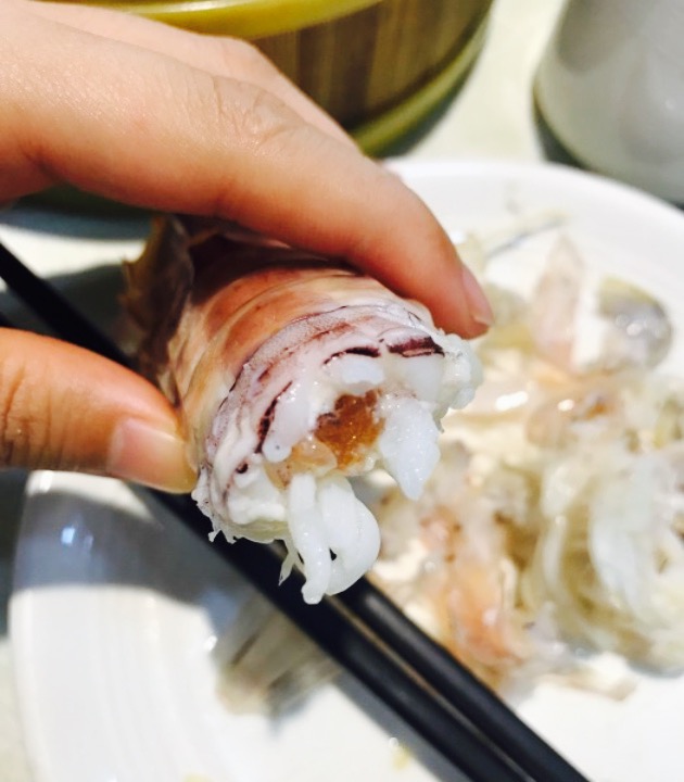 本来吃了海鲜之后很期待下层的粥,结果揭开后却是一锅米汤。蟹肉特别的饱满,无需蘸料自带甜味