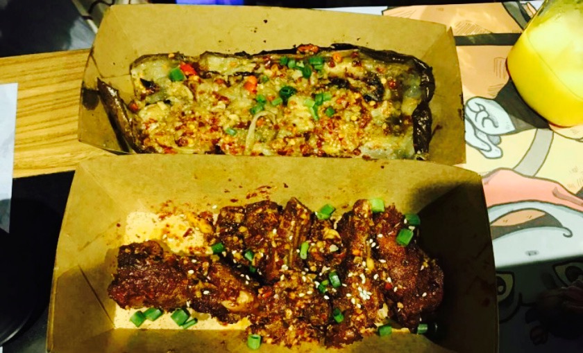 小吃推荐烤牛蛙,十里香排骨,爽口鱼皮,臭豆腐,去骨黑凤爪,烤茄子,烤牛蛙真的很香,配料好,烤出...