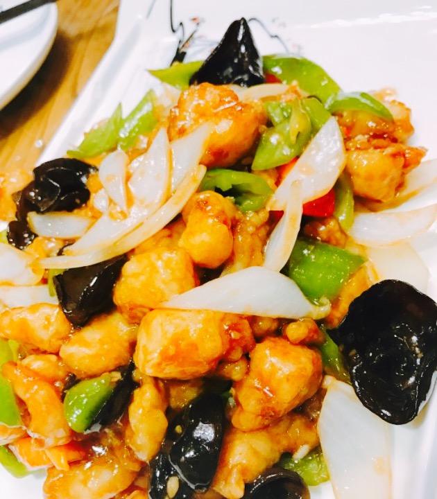 染完头发出来吃个饭,就近选了这边。据说以前还有外卖档口,和周边的华昌不相上下。津菜,做菜,明油亮芡绝对是这边的风味。饭店过来食客很多,基本上是周边的居民吧。上菜速度还挺快,菜量很小,盘子上都贴着厨师编号,传统店貌似都有这个规矩。杏鲍菇牛柳,48米。杏鲍菇切条和牛柳一起爆炒,加了洋葱和青红椒增香,牛柳不太好嚼哈,觉得肉不是特新鲜,而且略咸。川府鸡片,28米。用水煮牛肉的方法做了鸡肉片,肉质香嫩,而且麻辣味儿不是太重,垫底的金针菇和豆芽菜也都可以愉快的一口接一口。津门爆鱼虾,48米。鱼肉丁和虾仁都裹了面糊炸制,然后用木耳,洋葱和青红椒爆炒,咸鲜口味,配饭吃还不错。酸辣汤,小份12米。小份4-5个人完全没问题哈,加了豆腐丁喝起来软滑酸辣。白饭是服务员拿着小桶过来给乘在碗里的,很瓷实。适合家庭聚会的小馆,环境中式,楼上有包间可以提前预订。
