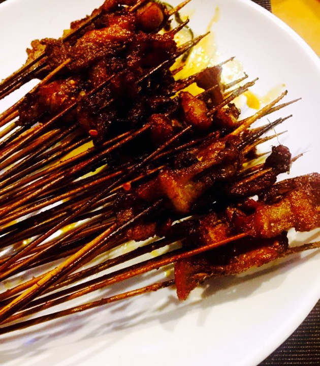 长药油炸应该是乐山一日游的压轴。位置不是非常好找,进长药后,大坝子的左边。有个蓝色灯箱写的,好运串串。如果还是找不到,就看到垃圾库,厕所旁边那家。因为长药里面有好多家油炸。不要走错了。坐的环境太差了,边上就是垃圾库。还有一阵一阵的垃圾味道飘来。但是油炸味道确实不错,很香。推荐,牛肉,花菜,香肠,土豆片。我看好多人推五花肉,我本人不是很开心,因为这家把五花肉都炸干了。已经吃不出肉感了。玉米也不是非常推介,因为本人不太喜欢水果玉米。四个人不含酒水才吃38。确实便宜到爆。