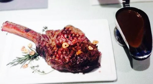 和老板到西站附近请客户吃饭,老板订的这里,这家餐厅地理位置好,大方饭店的B1层,不用坐电梯,从大堂直接走下来就可以。环境真心棒,因为是酒窖,墙壁上陈列了很多红酒,而且沙发神马的非常高大上,十分有面儿。#烟熏三文鱼沙拉# 。三文鱼和蛋黄泥一起,上面淋着沙拉酱,摆盘不错,味道也不错。#奶油蘑菇汤# 。蘑菇是细碎的,奶油味很重,但又不是过份的甜,十分好喝。就餐的整个过程都很清净,特别适合谈事。