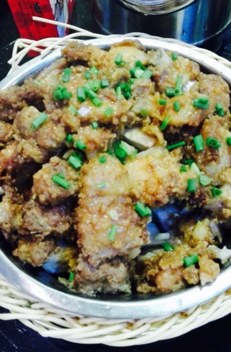 地方很大很宽阔,停车很合适,有好多位置,也好找,到198医院往里面走走就到了。前几天吃了东来顺,两家的菜谱几乎是一样的,同一家的,就看你们去哪比较合适了。用团购买了两张券,四个菜四根蒜香排骨我们四个人还剩不少,分量是足够啦,上菜速度我感觉没东来顺的快,因为好像人不多也等了这么久,不过二十分钟内都会上齐。餐前有零食吃。其它菜还好,就是鱿鱼太辣了,刚好菜有些多,鱿鱼几乎没动筷子都打包了。才三十一张的券,感觉真是赚了,之前一直没注意是午餐用,刚好今中午没饭吃就过来了。为了吃餐饭也是辛苦,开了半个多小时车,要是能三店通用就好了。