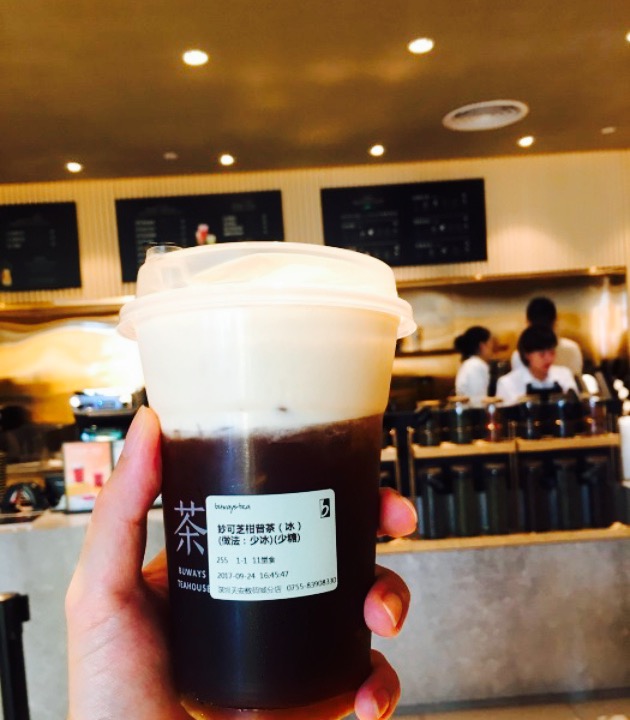 朋友推荐这家新开的茶饮,便来尝新。到后店里满坐,当在扫射有无人离开时,来了个白衬衫的帅气店员(观察了下他应该是店长之类的)帮我们找到座位,还马上清理了桌面。服务真的一级棒。说到饮料呢。1,我选了陈皮普洱好好喝,很适合酷热的夏天,酸酸甜甜,还有碎陈皮,口感很棒。2,妙可芝柑普,喝了朋友的哈哈哈。这个奶盖份量很多,店家好大方呀。而且奶盖一点都不腻,新鲜的飘香,喝起来一种轻薄的feel。3,还有一个很特别的,就是店里可以喝功夫茶,有店员现场冲泡,挺创新的。觉得这家店很快在深圳就火??起来了吧。