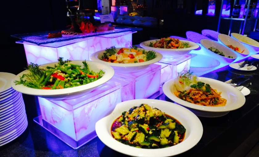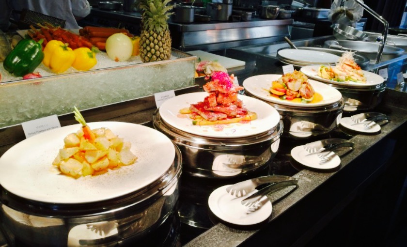 这家自助餐厅就在万达茂旁边的南宁万达嘉华度假酒店一层,品种比万达文华酒店多,装潢风格不一样,可是绝对能达到五星级大酒店的水平。服务生都是十分有礼貌的,不过有一个弊端,像我一个人去用餐的话,拿了一些食物放在自己的餐桌上,回头想再去拿其他的食品,回到自己座位发现食物已经被收走了,敲尴尬啊。并且是同一种食物被收走三次。三次啊。我都心灰意冷了。好听点说是服务员眼疾手快,不过特别不人性化啊。对于这一点能不能想个办法解决呢。比如发个翻牌卡给单独用餐的旅客,绿色面表示该座位的客人在取餐,红色面表示已经用餐结束。对于食材方面还是很清新的,海鲜粥真的超鲜甜呢。里面竟然有一整个龙虾头。甜品区有新品的话服务员也会主动推荐哦。比如梳乎厘就是服务生推荐给我的,因为要用温度保持口感,都是放在特定的地方,不容易看见,主动推荐这一点就做的很好。生冷区有金枪鱼刺身提供,这个在南宁其他自助餐厅很难见到啊。要知道日本人最爱吃金枪鱼啦,三文鱼对他们来说是低等食材,并且基本不会生吃,都是煮熟了吃。所以这家有金枪鱼提供真是高大上啊,可惜口感还是欠缺了一点点,但是已经很不错了。来万达茂玩的话可以顺便来这里吃哟。