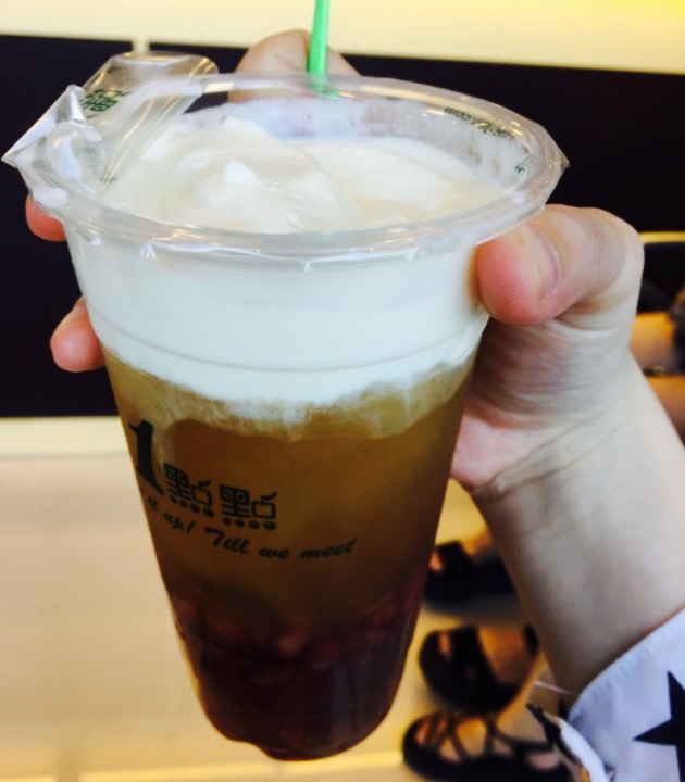 盐城的第四家店,可是这家店真的大,装潢了也漂亮。一点点的料都不错。波霸,Q弹 。有嚼劲(不过如果胃不好不要吃太多啦)珍珠,一大口吃很爽 。口感好椰果,一般啦 。偏甜,不好吸。红豆,比较烂,不过有嚼劲,甜。布丁,超级推荐。甜。爽口。特别是和其他料混在一起。燕麦,超级推荐。软软的但是不失口感。粒粒分明。和布丁绝配。