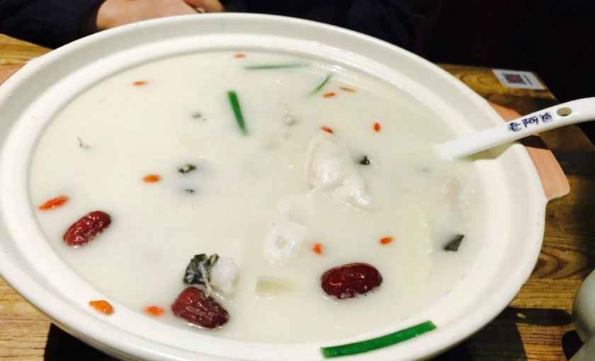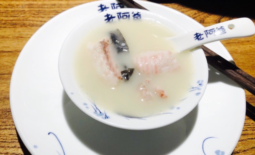 在邻瑞广场4楼,晚餐时间人不少,这边的生意一直都是很好的。农家味很浓的装潢风格,随处可见的吊篮,腊鸡,腊肉,敞开式厨房的鸡汤,让人胃口大开。点了老阿爸家的看家菜,鱼钩鱼汤,汤水稠厚,奶白味鲜,十分营养。竹荪菌土鸡汤,鸡肉紧实,竹荪菌一如既往的入味,鸡汤清而鲜。据商家说,鸡是无水蒸煮,锅盖上加了冰块,由冰水流入锅中形成鸡汤,有点冰滴鸡汤的样子,呵呵,很有创意很用心。干菜红烧肉,是搭配馒头吃的,干菜很好吃。豆皮,也是推荐菜,现做现吃,新鲜清香,透着一股浓郁豆香,回味清甜。烧饼,个虽小,很是香,馅料是干菜,香菇,肉丝,热乎乎的上桌,香脆。