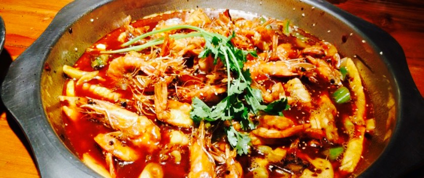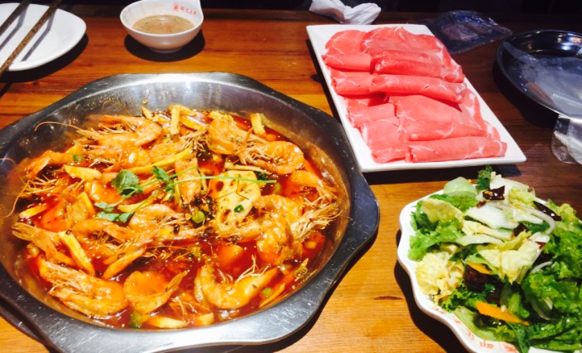 位于大东副食对面,沈阳很多家连锁店,刚开业有很大力度的优惠,现在八八折,周末中午去人不多,要的小份20只虾38元,微辣。上菜有点慢,每位酱料5元,吃虾的时候用香油麻油泡椒就可以,涮菜的时候蘸麻酱最美味。两个人除了虾锅点了牛肚,茼蒿,菠菜,金针菇,鲜豆皮,锅里自带薯条和藕片,先吃虾再涮菜,商家赠送酸梅汤,很甜,赠送扯面。打折后120多,服务生和老板娘都很热心,提供一次性手套和围裙,味道很不错。