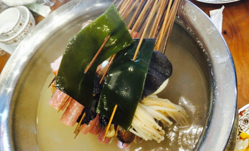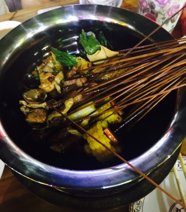 朋友推介的一家店,第二次来,主要就是各种串串,中午去的时候人不多,服务态度不错,这边有免费的小吃水果提供,环境优雅清静。要的微辣的锅底,吃着挺过瘾,没吃几口就出汗啦。这边的串串都是均价,每串都是0,8元一串。之后服务员说可以有清汤锅底,于是第二锅选择清汤,有一款腊肉味道特别正宗,广味腊肠味道也非常好。