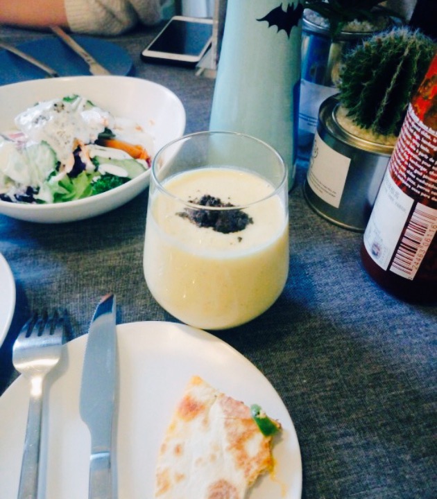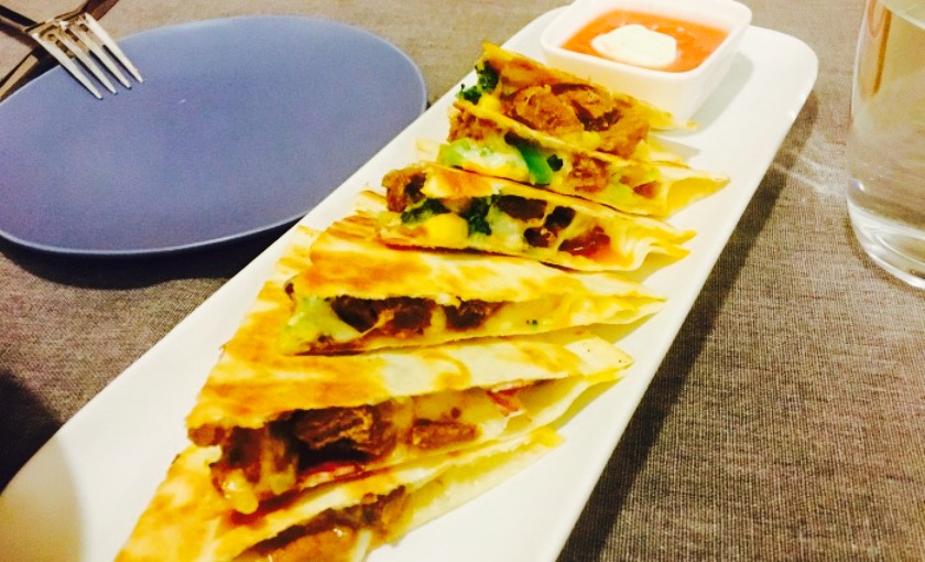 这家挺精细的小店最大的缺点就是难找,在中山南路上零食工坊和交通银行中间的小巷往里走一点点右手边盛天大厦进去右手边一单元六楼。两小哥一起开的店,开不久,俩很友善,没细看但感觉很安逸,最开始送上柠檬水很亲切。布局很温馨有爱,就三小方桌,清幽,小众。晚上去的,没人在那吃,但时不时有外卖订单。回归正题,团购的牛肉芝士馅饼,摆盘漂亮,馅饼大约6块忘了,皮薄酥脆,料足,孜然味的牛肉和芝士的咸奶香味配合很美丽,削弱了孜然的冲和芝士的腻,加上玉米西兰花等蔬菜配陷也算营养均衡,配上酱也不错,我把摆盘的小柠檬的汁挤在酱里,新鲜。牛肉略老了些。饱了。