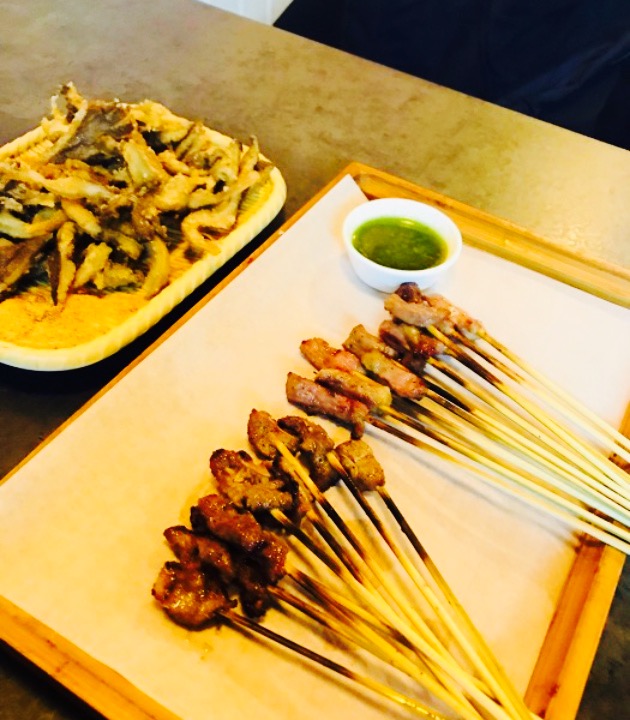 很赞的餐馆o(∩_∩)o。和朋友们去的。地图很准,店藏在弄堂里但好找,装潢风格很不错,怪不得人说私房串店,确实小资味道。店内除了有苍蝇基本没啥缺点了。厕所都很卫生。非常推荐炒辛拉面,真的比普通方便面好吃哦,那口感。不一般。烤排骨,不错,就是有点糊了,蘸料好像芥末的呢。不懂,只是味道新颖。炸土豆片,香甜好吃,还赠送西瓜,也很甜。炸鸡叉也不错,推荐下。