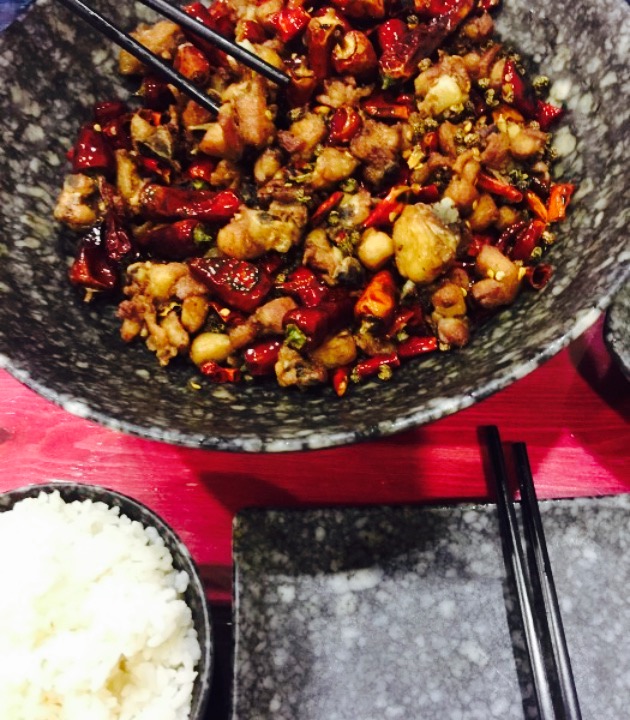 刚下车,来到这里,感觉好饿,看见了龙虾盖饭,就进去品尝,犹豫来的挺晚的,就随意点了点吃的,朋友说辣子鸡好吃,就点了。青菜上菜速度很快,辣子鸡就有些慢,或许是做法比较麻烦,辣子鸡味道还不错,就是放了好多麻椒和辣子,有点刺激,整体还可以。