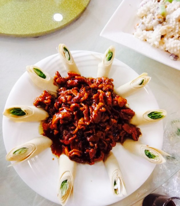 1,牛窝骨,味道一般般名副其实,一个盘子只有两个牛窝骨,其它都是洋芋。2,烧肚块,味道刚好,整盘都是牛肚。3,水煮牛肉,味道偏辣,喜欢吃辣的人推荐。4,熘鱼片,不推荐一点也不入味,鱼片味道一点也没有,还有鱼刺。6,八宝苦菊,不推荐,不值16。7,香辣鱿鱼虾,是这几个菜里家人最喜欢吃的,虾和鱿鱼炸的挺稣,味道还不错。