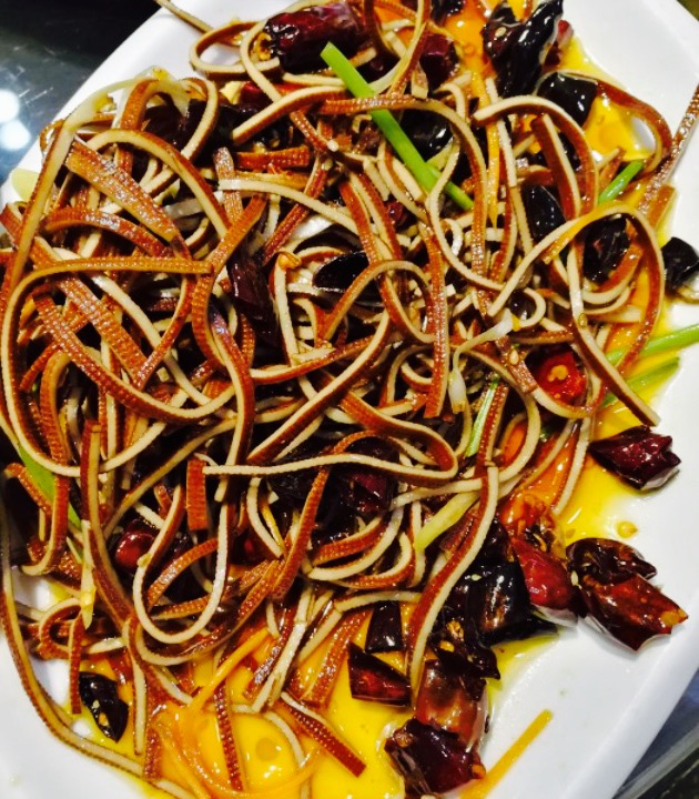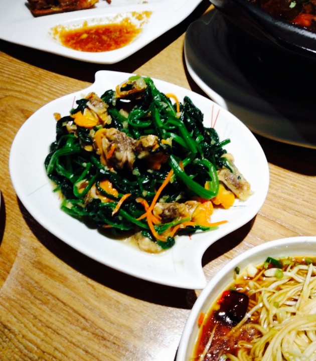 辣的小海鲜很有滋味,尤其是辣小鲍鱼,可口。毛血旺不是非常辣,不能吃辣的人也可以吃一点