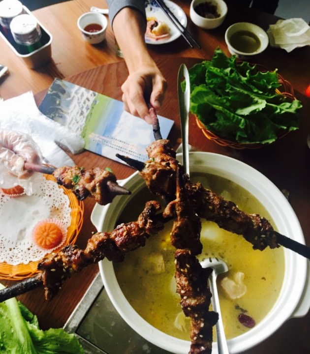 东圃珠村又有一个好的去处,那就是蒙古包里吃全烤羊哈哈。环境很好,三个蒙古包很有特点。22个人聚会在蒙古包里好热闹好开心。以吃羊肉为主,烤全羊很入味的,没有骚的味道,烤的能锁住肉汁不会好干有种入口即化的样子好棒,羊肉串的肉有肥有瘦的很爽口,一级棒,还有羊肉包,羊肉饺子,羊杂汤,冷拼盆都很好味,蓝莓山药,凉拌冰菜好有小清新的味道。奶茶咸咸的,味道很浓啊,很好喝。席间还有蒙古族的美女和俊少表演歌舞,很有氛围,有兴趣的话值得去体验体验一下。
