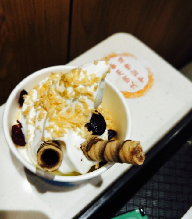在舞台国际人气挺高的,逛街逛累了还是找个地方坐下来喝点饮料吃吃零食比较好,小孩子也非常喜欢这边,在舞台似乎并没有竞争对手,所以点个餐要排队很久,带着小朋友的全都会选这里来休息一下,地方不是很大,坐在里面的过道位还略显拥挤,点了一份带冰激凌的小吃套餐,价位不贵。