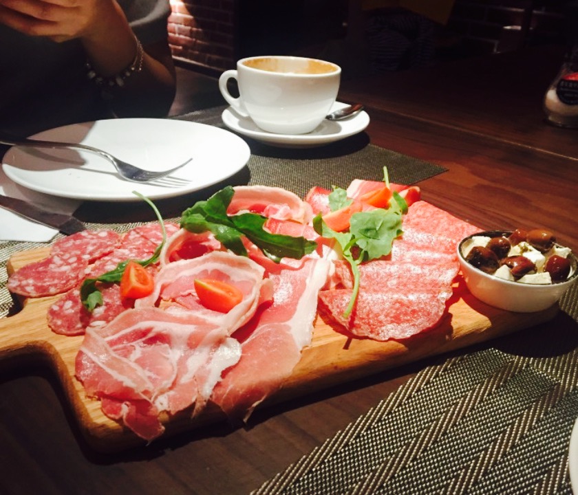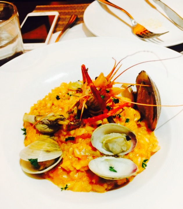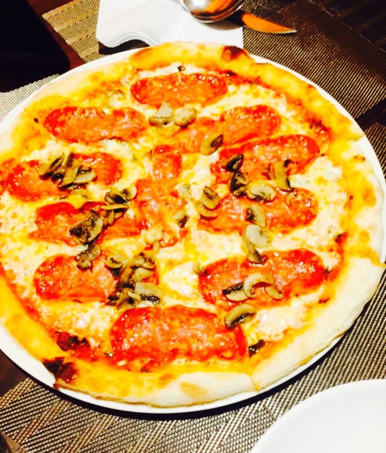 朋友带我们的来这家意大利餐厅 。位置,我们从王家湾过来的,直接坐的地铁3号线,东风公司站下E1出口。一出来就可以看到餐厅啦。环境,一进大门就可以看到一个烤披萨的炉子,有个歪果仁大厨在烤披萨。整间餐厅装修环境雅致,我们坐的是二楼包厢。口味,上的第一道菜是地中海风味拼盘,食品是冷的配着面包吃,味道很好。接着是虎虾沙拉,虾的味道特别好,沙拉的酱料也是我喜欢的。小吃点的是炸薯角,蘸番茄酱。主食点了一份千层面一份烩饭一份鳕鱼一份羊排三个披萨,我本人比较喜欢鳕鱼和羊排,鳕鱼和羊排都很嫩,味道十分好。还点了一份什锦扒时蔬,烤的茄子和笋瓜。甜点点了提拉米苏和熔岩巧克力蛋糕,我吃的熔岩巧克力蛋糕,都是现烤的,吃的时候蛋糕还是热的,口感特别棒。总体来说味道都不错,十分开心的一次就餐感受。