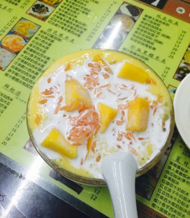 特地开着????去喝糖水,没想到那么晚还这么多人,都开了几台小桌了。最著名的就是这边的双皮奶和凉茶。红豆沙和绿豆沙也是特别不错的哦????。红豆双皮奶,有着红豆的香甜+浓香的双皮奶,好鲜美。芒果西米露,西米露好鲜美,芒果不是很甜。红豆沙和绿豆沙甜甜的沙沙的。很好喝,o(∩_∩)o。这种老店的服务和环境就是一般般咯,独特的特色吧o(∩_∩)o。