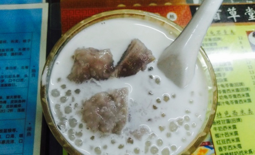 红豆沙和绿豆沙也是特别不错的哦?很好喝,o(∩_∩)o。最著名的就是这边的双皮奶和凉茶