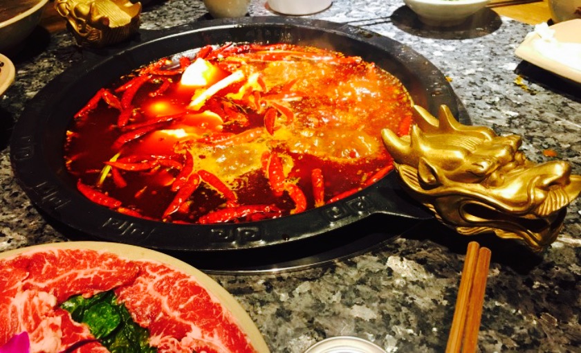 具体地址位于新天润国际社区旁罗马天街,不难找,店门口有个好大的功夫熊猫,店内装饰也格外有特点,浓厚的巴蜀风情,超级喜欢店里的阶梯,有种老客栈的情调,店里的各种装饰画都是好汉图,还有很多功夫熊猫的大侠元素,超爱。必须一提的是,最爱左边楼梯上去的一副“百鱼图”,真的看了许久。再来说说火锅味道,锅底真心超级正宗,不过煮到后面水分蒸发有些咸,再来就是菜品,最爱鹅肠和嫩姜牛肉卷,鹅肠是真正的鹅肠,跟我在成都有家名店吃到得一样鲜美,超新鲜,口感爽脆嫩,牛肉卷卷了仔姜丝和金针菇,在寒冷的天里涮两个,仔姜的微微辛辣会让整个身子暖和起来,口味很协调,确实很棒。虾滑也非常美味,像是两种虾滑,都很q弹,里面有大颗虾肉,嫩滑啊好吃(花痴脸ing)。这样一家有心的店,真心一定会常来的。
