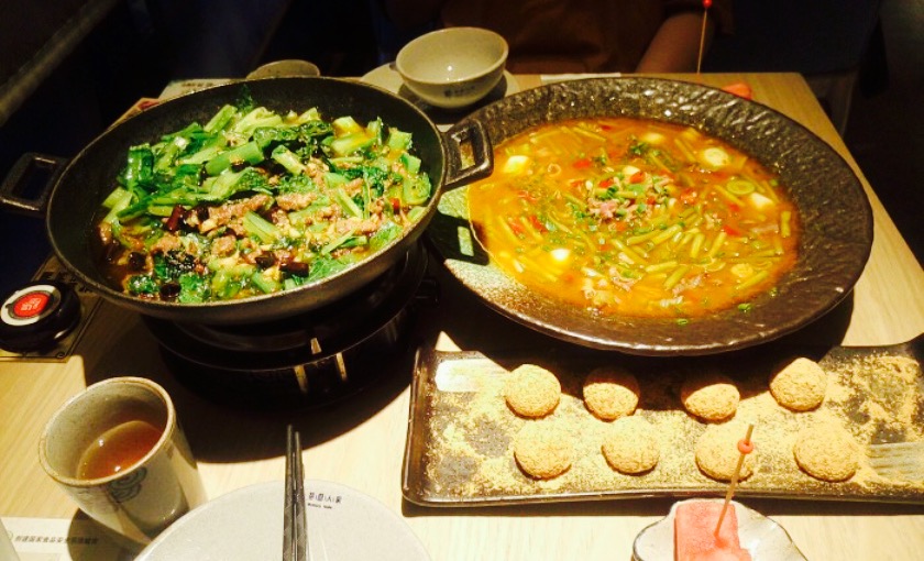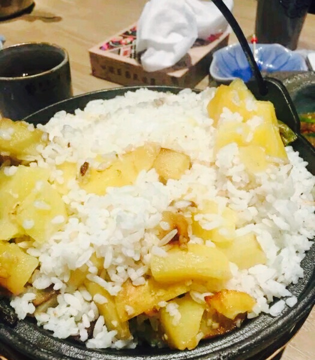 跟着同学来蹭吃蹭喝。【青菜牛肉】看评价都在说好吃,作为招牌菜于是第一个就点了。只是本人觉得油加的太多,到最后都是浮在上面的油,看着没什么胃口。实际上没有必要加这么多油吧,不然口感会更加好,卖相也会更胜一筹。只是好在分量还是比较多。【神仙酒】被图片吸引了,烟雾缭绕觉得很漂亮。可是,在我们问了服务员大盆多大以后,也只是简单回答了几句,最后两个人,强行喝了半盆快撑到。味道的话酒味还是很香的,比较有特色可以一点。其实可以让店员适当给点分量上的意见这样提高服务的品质。【荞粑粑】??????觉得这个最美味了。单吃带走荞麦的苦味,加上一点蜂蜜,正好中和了口味,所以很香。觉得吃着很健康。【锅贴土豆丝】我不喜欢这道菜。实在太油,加了吸油纸还是一层油,要么就在厨房再处理一下过一遍油,吸一下。吃完几口只觉得满嘴都是油光很不安逸,而且主要是也没有什么其他味道啊。还是不如点其他特色小吃,这个雷,我先踩了。【服务】服务小哥态度很好也很热心。