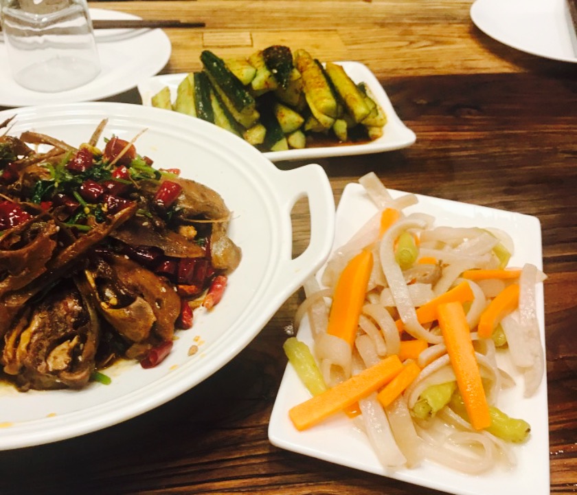菜品都挺不错的,我们点的偏辣的比较多,总体菜品都比较咸,如果口淡的朋友记得让他们少放盐。馆子环境也不错,有时尚感,还有民谣歌手现场演唱,氛围还是十分不错的。缺点是没有厕所,但是这不是问题,去洗手间要去连通着的ktv,挺合适的。最想吐槽的就是她们的服务,不知道是服务生少的缘故还是什么,让服务员点菜还是挺痛快的,让把空盘子撤走,结果甩给我一句“现在没有时间”,然后就默默地去点菜上菜了,什么情况。服务还分优先级啊。好不容易过来撤盘子,是因为后厨的铁锅不多了,该收回去了。我滴天,你可以要服务费,把服务质量提上来,我也没说不给,这体验就太差了吧。