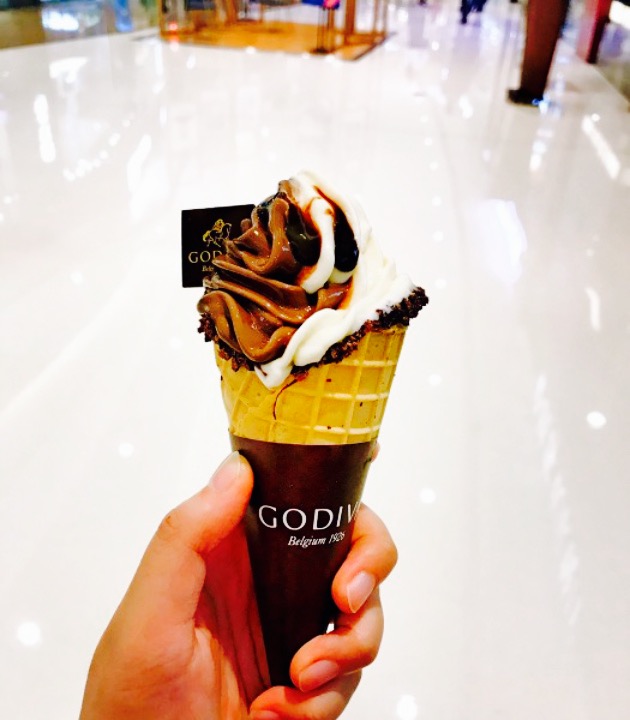 姐姐说要在我生孩子前斥巨资请我吃个冰淇淋,高兴的我屁颠屁颠跟着她来品尝这个斥巨资的冰激凌,结果到了万象城一看原来是歌帝梵啊,五十块钱一个甜筒确实不便宜啊,这次哥哥要了个香草的我依旧要的双拼,其实看着店里还有成盒的冰激凌和冰莹,冰莹应该是喝的吧,想下次尝试一下,也想尝试一下别的口味的冰激凌,今后有机会再说吧,巧克力也是蛮馋的,好了想吃的东西太多奈何荷包太扁,有机会慢慢吃嘻嘻(♡˙︶˙♡)。