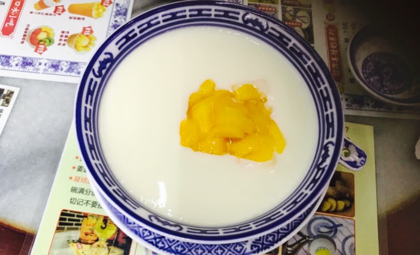 暑假时就在朋友圈里看到好多朋友去吃了,心心念念很久但是一直没去。趁着国庆回来和爸爸一起去吃的。位置在陶珠路大排档旁边,白色的招牌很醒目,八点多钟去的店里人还好多,基本是座无虚席。点了招牌双皮奶,姜撞奶+莲子,一共28,略微有些贵,上的很快。双皮奶味道不错,觉得和一般奶茶店卖的还是有些区别的。姜撞奶是热的,要等五分多钟才能吃,味道不错,我挺喜欢姜味的,如果平常不吃姜的人可能会不习惯。给妈妈打包了双皮奶+芒果回去。今后还会再来的。