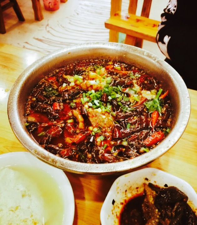记得是吃的小碗菜,配上的豆花,口味特别不错,环境一般,记忆模糊了,好像是这家菜品,但愿不会错了。梅菜扣肉很鲜美,因为点了两份,还是有些腻,猪蹄汤很好,牛肉也很爽口。肥肠非常赞,是去油了的,味道很不错,非常推介,荤菜都没有搭配配菜,建议还是自己点些素菜。