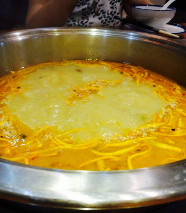 到店已八点过,本以为假期,吃的人应该蛮多,没成想居然是包场的节奏。店很大,我们选择挨着大门的桌子。一家三口,用了团购的二人汤锅套餐。上菜挺快的,菜品也还是蛮丰盛的。沙棘汁好喝,手抓饼也不错。汤锅选的羊蝎子,没有数,目测有六七块,骨头上肉还比较多,也很耙,沾上味碟,味道还不错。套餐还有娃娃菜和粉条,两人吃,足够。店面环境不错,服务生挺多的,态度也挺好。很糟心的就是我们想吃烤羊肉串,问了服务员还有没有,回复说有的,结果一直到吃完也没上,竟然没给下单,也是醉了。