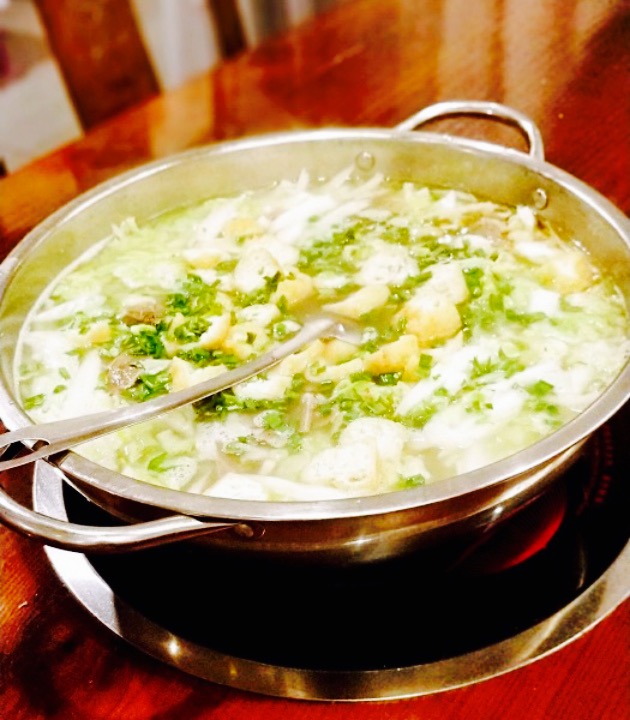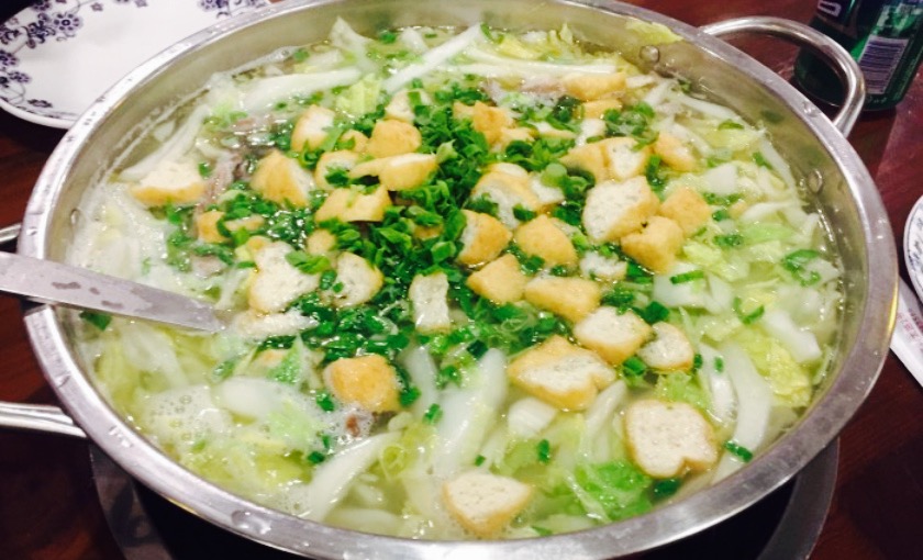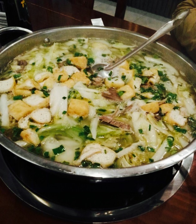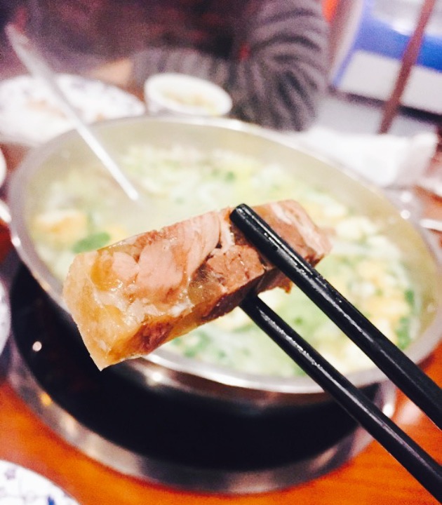 这种冷冷的天气吃羊肉最好不过啦。这家店在美食广场东边,很好找。羊肉锅确实很大一个锅,里面有大白菜,粉丝,油豆腐,羊肉,边煮边吃,可以加点辣酱,特别专业的羊汤味道,我们三个人去的,又另加了羊肉,味道很鲜。推荐羊羔,是小时候那种味道,很正宗。红烧羊脚,觉得是红烧羊排骨,味道倒是很不错,所以他家红烧羊肉应该会很爽口。咸菜炒豆芽居然特别爽口,那个咸菜有一种想打包回去喝粥的冲动。