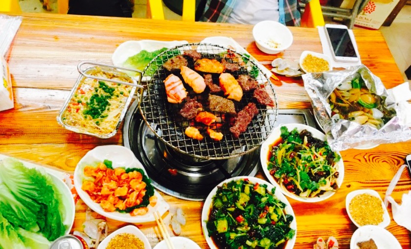 这家烤肉确实是炒鸡推荐。肉挺清新,而且量大。用炭火烤出来的肉巨好吃哈哈哈哈。老板娘态度很好,我们觉得火大了给我们弄出来两块炭,觉得火小了又给我们加。有干碟和酱油碟,两种蘸起来有不同的韵味。带朋友吃了两次,朋友说累了一天吃到这个烤肉感觉整个人被激活了。如此可口还这么便宜,好怕老板不挣钱。千万不要关门啊老板。实在好鲜美。推荐五花肉和牛肋条。虽然没有空调但是风扇很大风不会吃到满头汗。今后还会带朋友来帮衬。