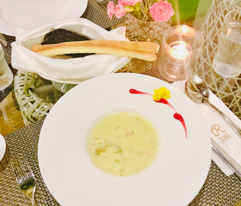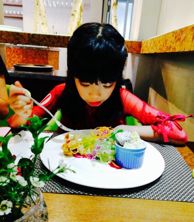 一幢小型别墅,在以前小灵精的位置,现在前面弄了个玻璃房,挺有趣的的,整个房子以绿色为基调,夏日来应该感觉很新鲜。但是室内较暗,灯光貌似有些欠缺。来了个3人餐,小聚一下,摆盘很漂亮,汤很有吃大菜的样子,推荐这个叫做螺丝粉沙拉,味道很淸新,不油腻,材料多彩,口感丰富,挺容易入口的。只是下次再来得吃肉,我是个吃肉兽??????。